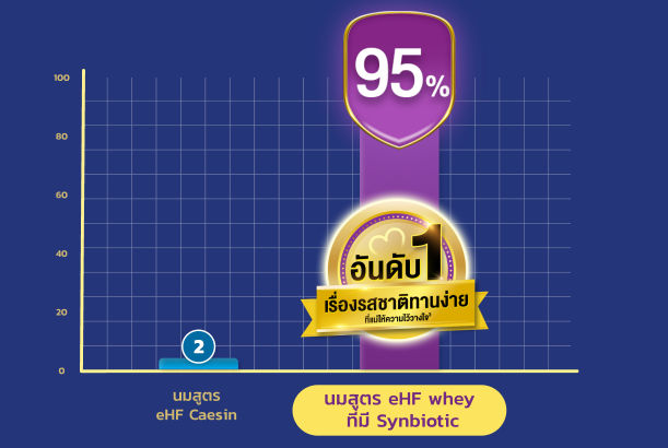 อันดับ 1 เรื่องรสชาติทานง่าย ที่แม่ให้ความไว้วางใจ จากการสำรวจความพึงพอใจกับแม่ที่มีลูกแพ้โปรตีนนมวัน (blind test)